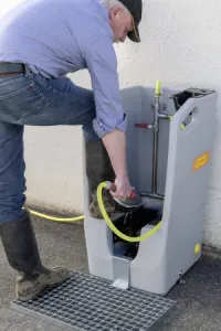 with integral sump for dirty water collection and run-off, optionally on the right or left